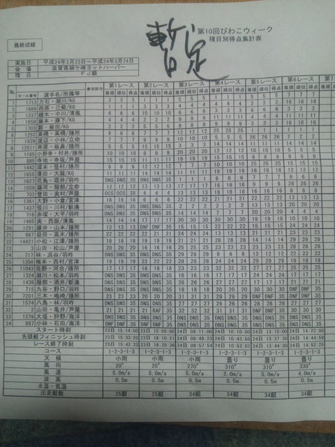 琵琶湖ウィーク二日目の暫定順位