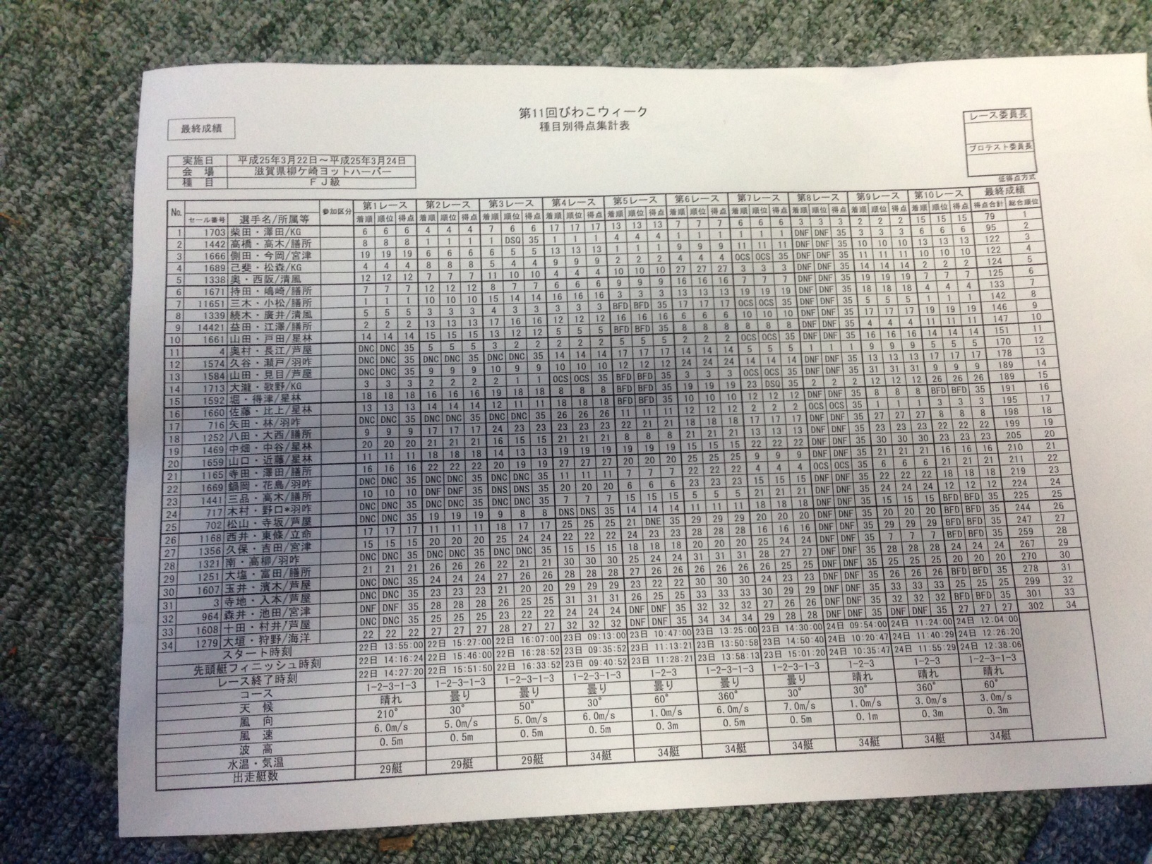 したがって、最終順位は一位膳所1442 二位KG1703 となります