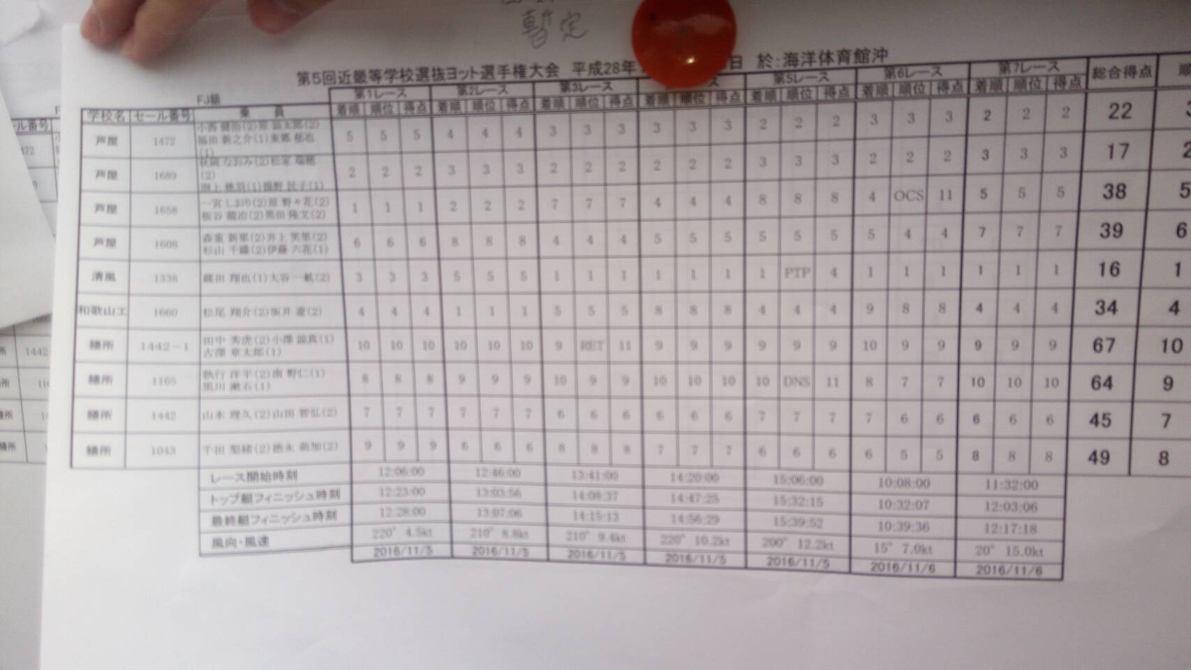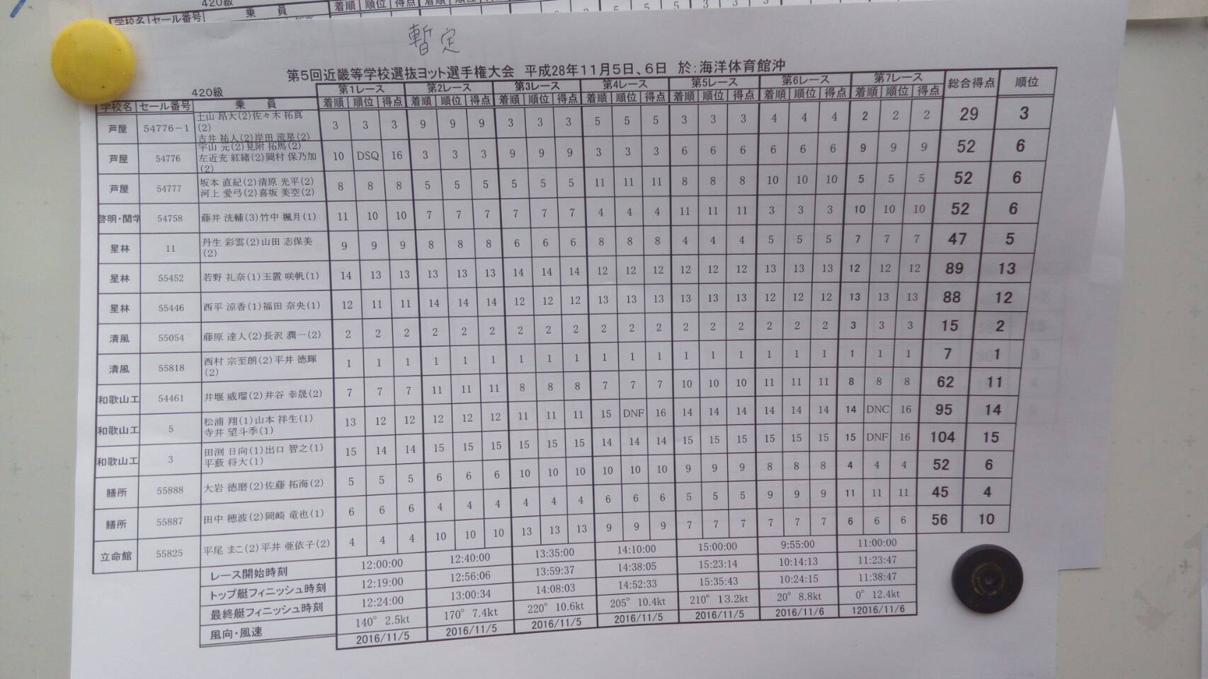 結果からいうと全然良くなかったです。かろうじて420の田中,岡崎組が善戦をしていますが、他は全然です。自分たちの実力が思い知らされました。ただ、まだ、二レース残っています。明日は最大限の力を出さないといけません。自分たちの艇は1下まで、良くても、自分たちのミスで順位を落とすようなことがあって、勿体無いレースをしてしまいました。明日は強風ですが、微風の時のような繊細さで船を操りたいと思います。艇ごとに今日感じた他校との差や、自分たちの劣っている部分を少しでも、改善または改善のためのヒントを得られるようなレースに明日はしていきます。