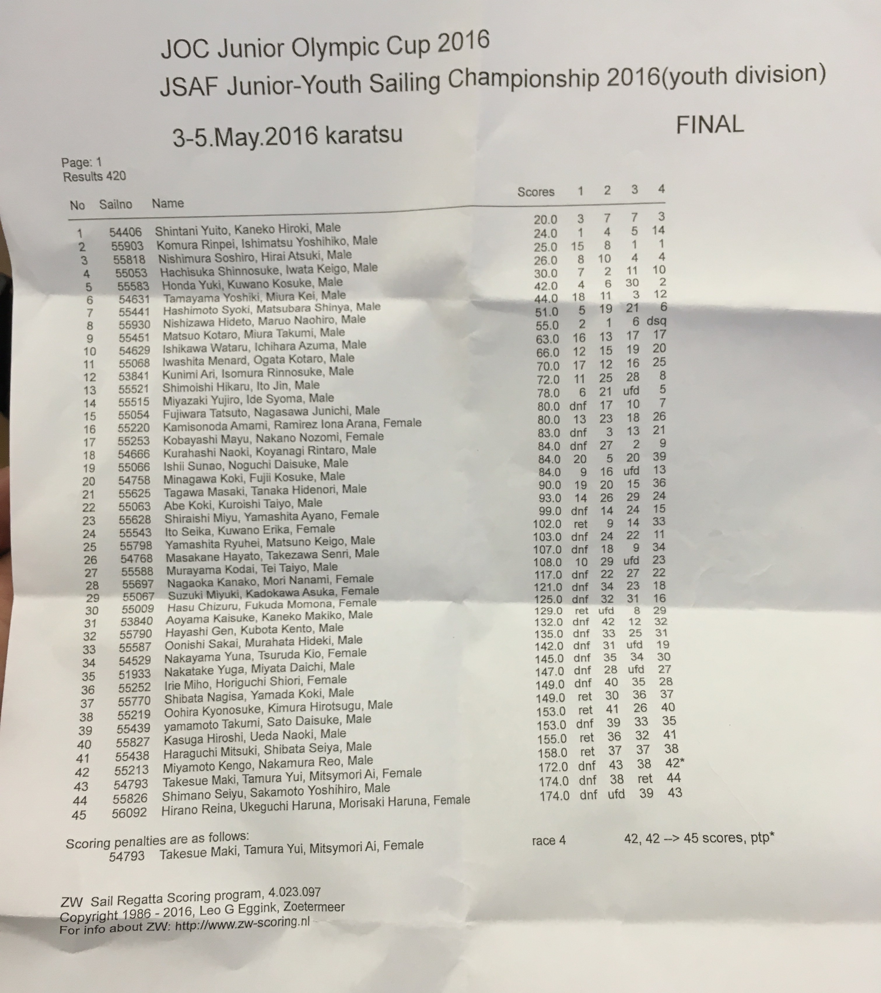 昨日の沈でポールを流してしまった艇は今日ランニングで大きく差がついたので強風時には事前にその準備をするべきでした。