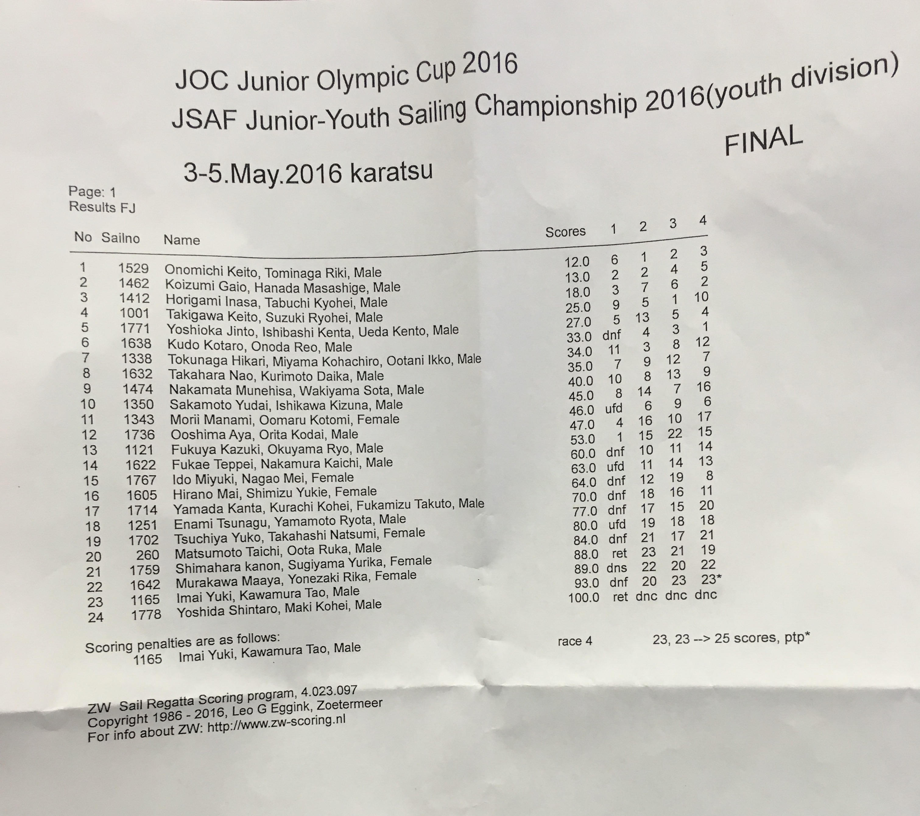 艇番号 セール番号