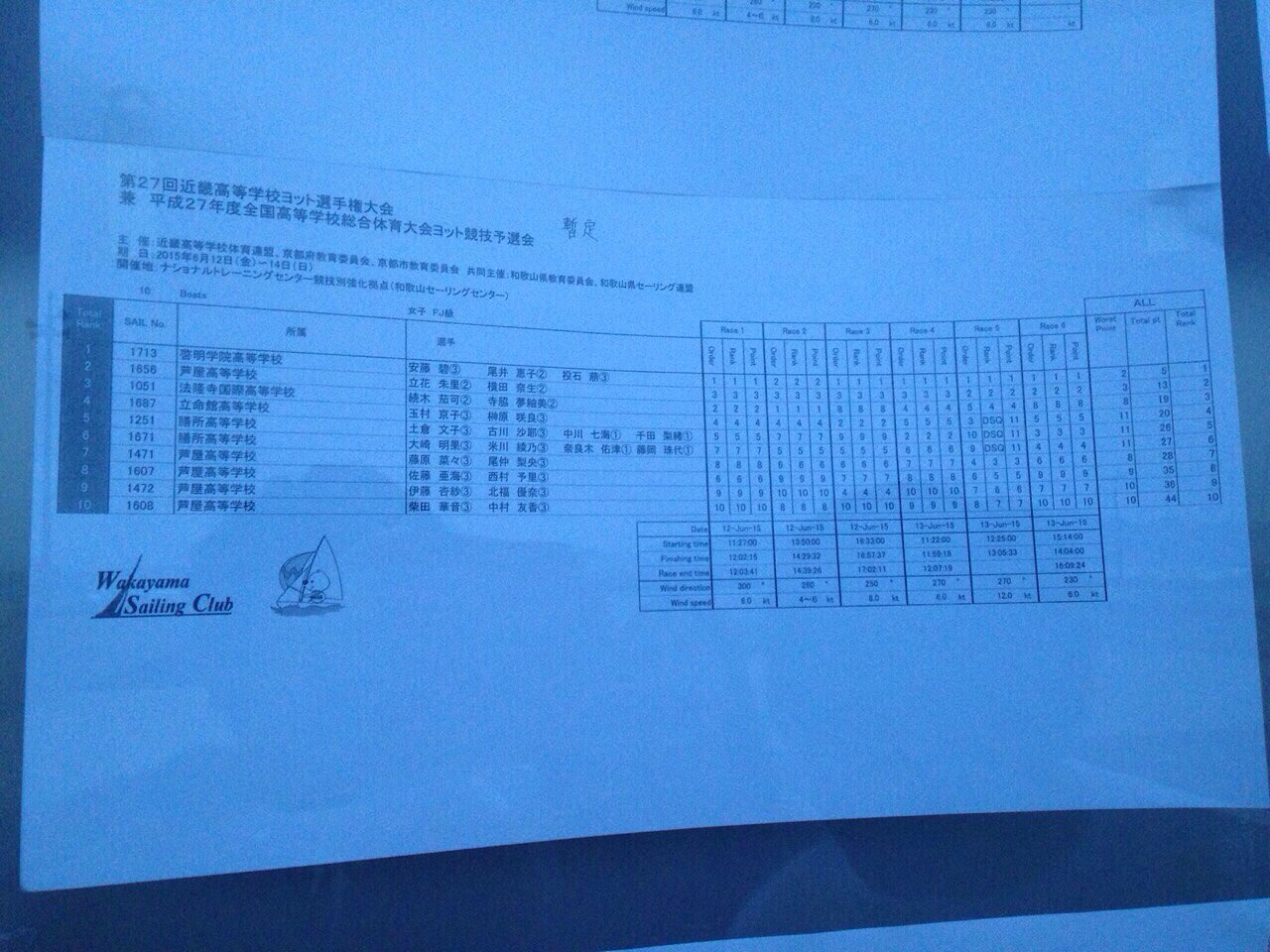 今年度からインターハイに出場できるのは各種目ごとに各校一艇までとなり、男子、女子FJ級は上位3校、男子420級は上位4校、女子420級は上位2校でした。また、デュエット競技は廃止されました。残念ながらインターハイ出場は叶いませんでしたが、高校ヨットの集大成として、最終レースに全力で取り組まれたと思います。大学でもヨットを続けられる方は、今大会を糧に頑張って欲しく思います。