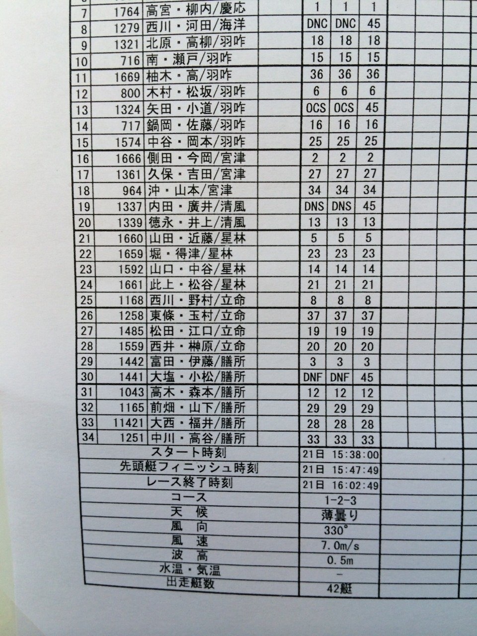 ・周りの艇を見てスピンポールの高さを比べる