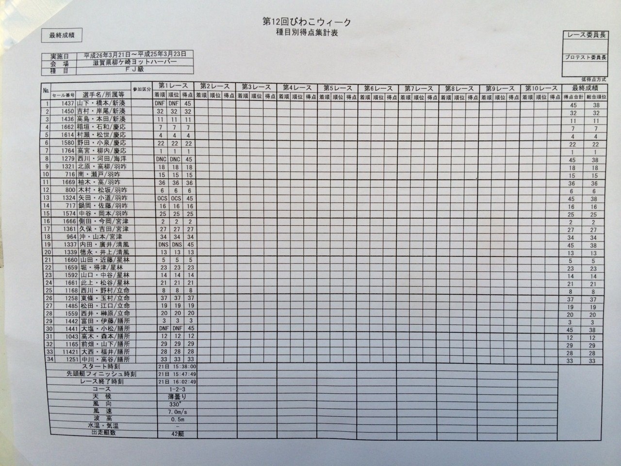 FJ:帆走・スタート練習・コース練習 ・ラウンディング