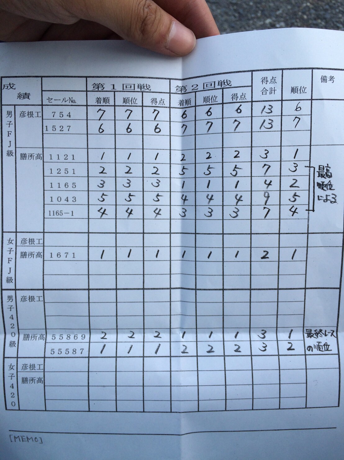 レースを見てくださった山下先生、中村さん、山根さん、運営の方々、ありがとうございました。