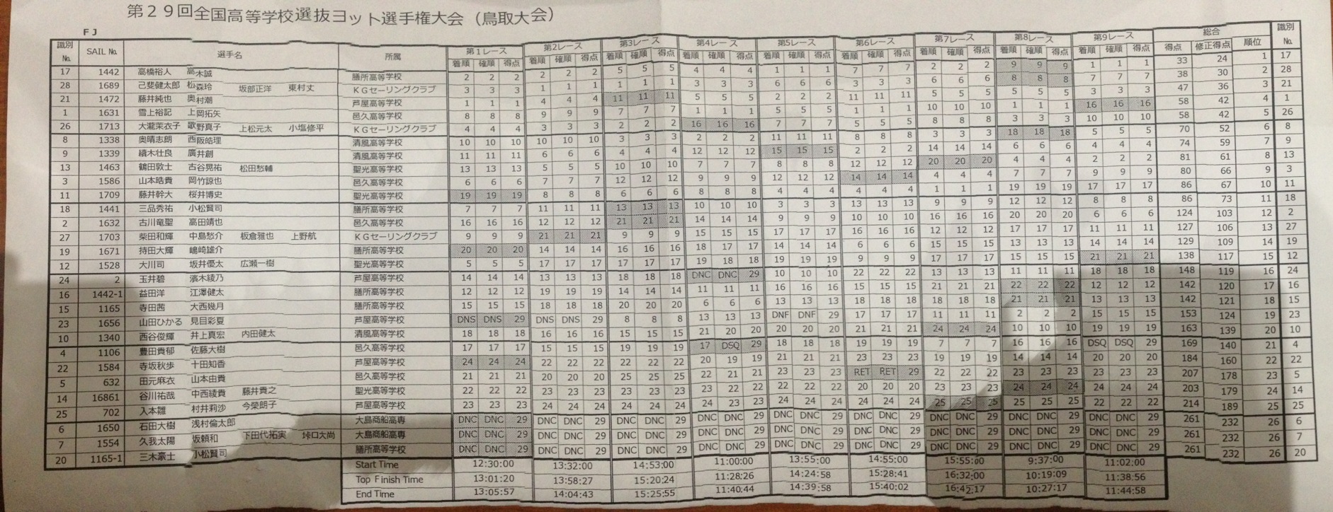 三位 伊藤 3*3*3*3*DNC*DNC*DNC*1*3*3 34点